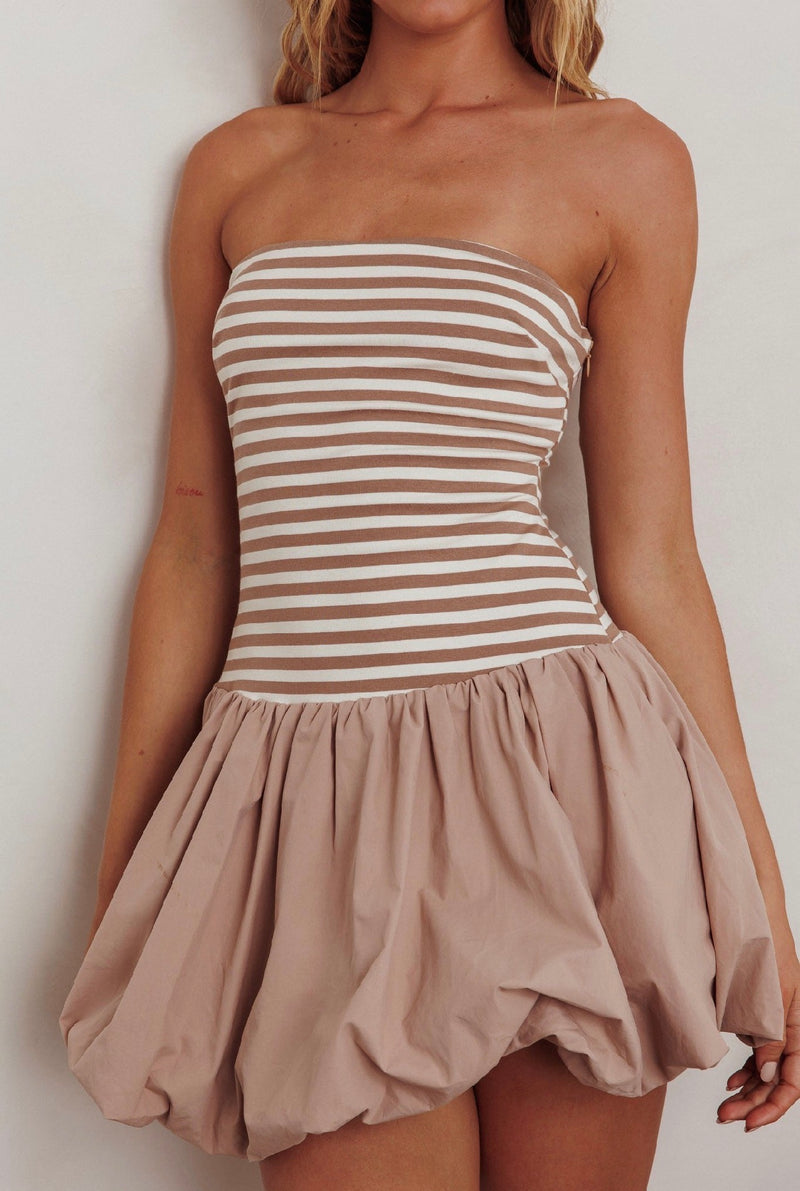 Kaytlin Solid Combo Polka Dot Bubble Hem Mini Dress